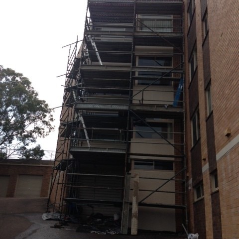 - Erect scaffold and remove corroded structural steel support posts