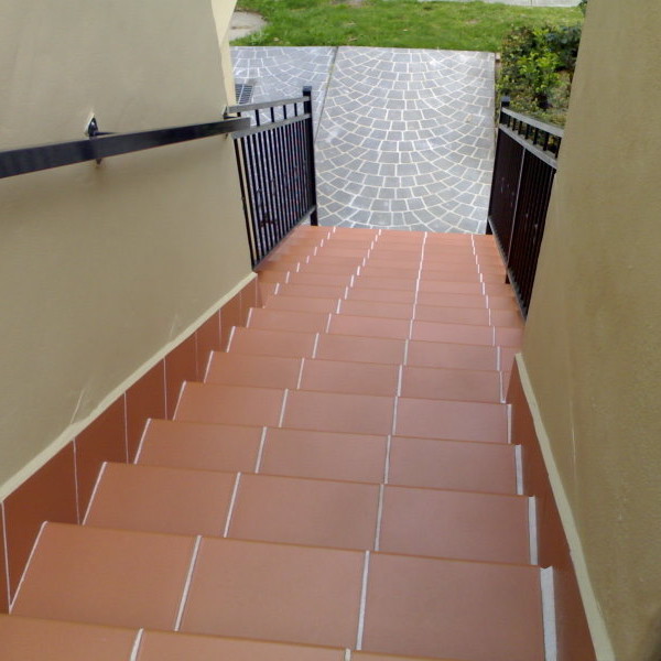 • Remove existing tiles and bedding to deck area and stairs.